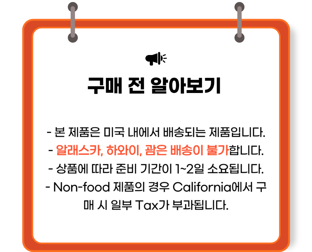- 알래스카, 하와이, 괌은 배송이 불가한 제품입니다.
